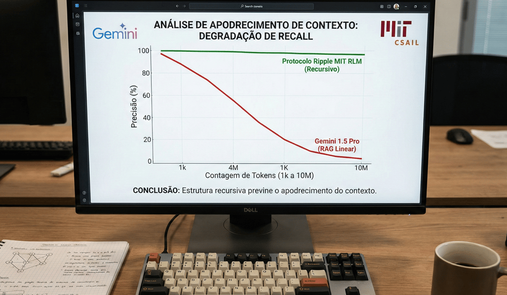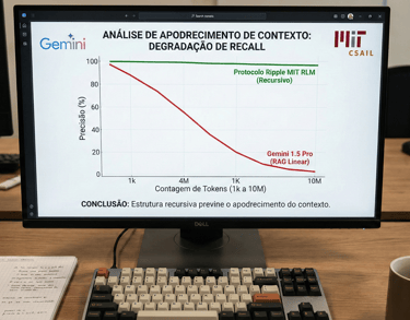 A indústria de IA vendeu uma mentira: a de que "janelas de contexto gigantes" resolveriam a inteligência. O que estamos vendo em campo — e o que o MIT acaba de dissecar em seu paper sobre RLMs (Recursive Language Models) — é o fenômeno da Apodrecimento de Contexto (Context Rot).